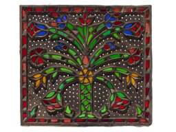 This stucco and glass window corresponds iconographically and technically to one of the standard types of qamariyya widespread in Egypt during the Ottoman period. The representation of the Tree of Life has a long tradition across time and cultures and can also be found in the Islamic world, where the tree that flourishes in paradise, called ṣidrat al-muntahā or ṭūbā, alludes to the Tree of Immortality described in the Qurʾan (20:120). Representations in various media, including ceramics, textiles, mosaics, murals, and stone or wood carvings, emphasize the widespread use of the motif in the Islamic realm.
