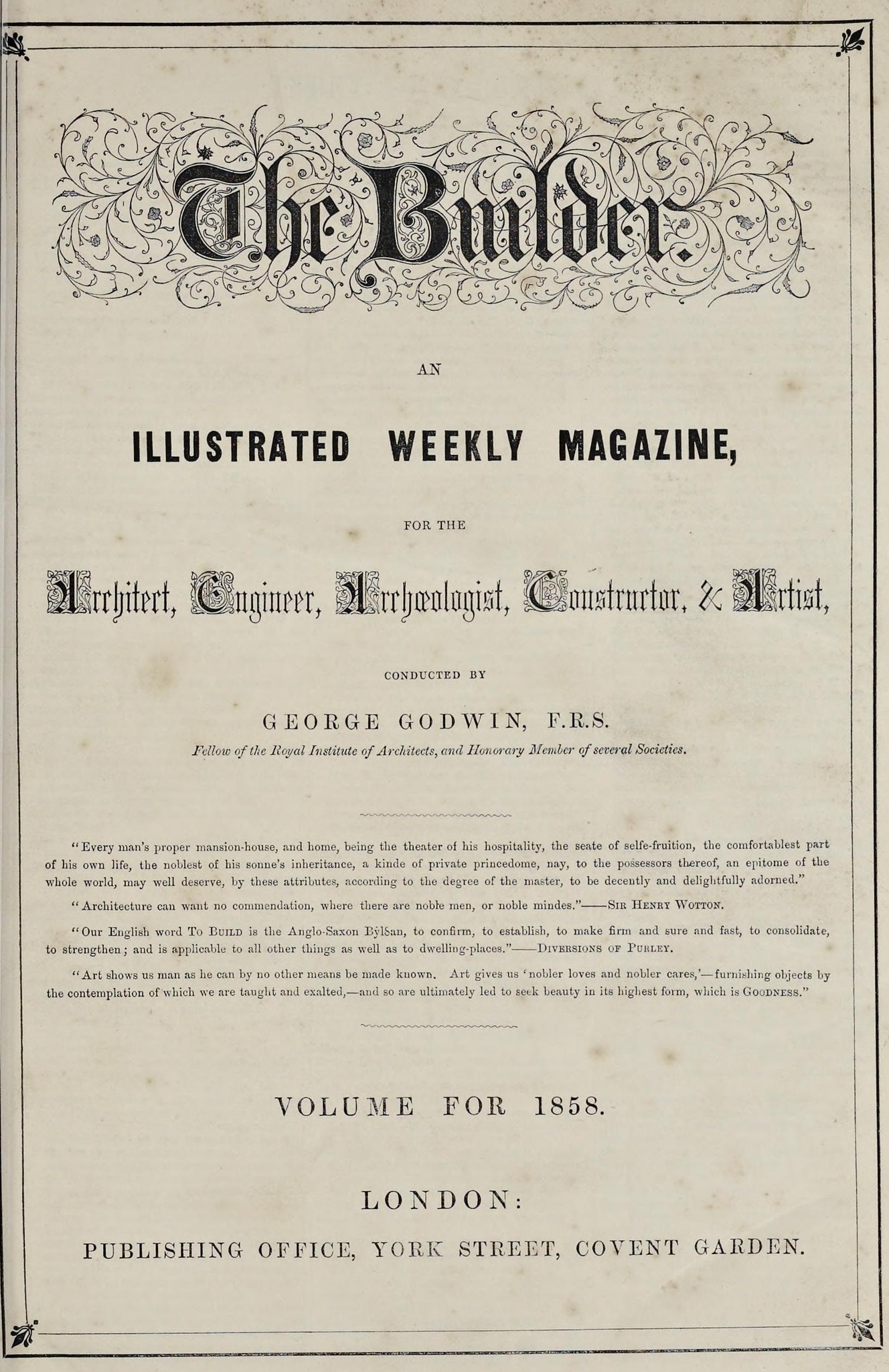 Published in the weekly journal The Builder, vol. XVI, no. 783–784, pp. 88–90, 104–108.