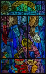 Le vitrail se compose de onze panneaux répartis en trois parties.