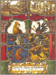 Bruckner-Herbstreit, B. (1960). Die Fenster- und Wappenschenkungen des Standes Schaffhausen. Schweizer Archiv für Heraldik, Bd. 74, S. 63–65, Abb.
