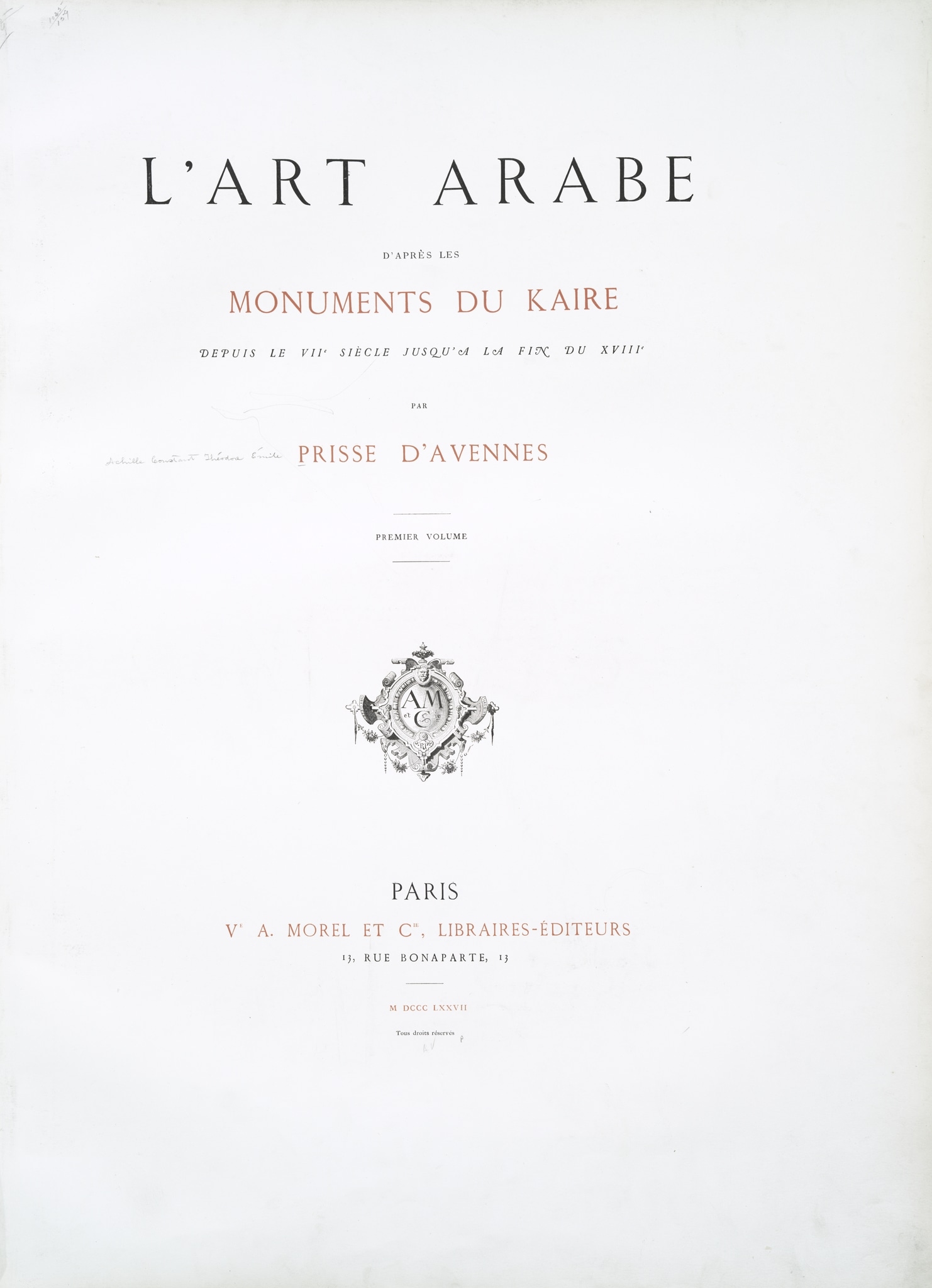 IG_30: Title page of L’art arabe d’après les monuments du Kaire depuis le VIIe siècle jusqu'à la fin du XVIIIe, 1869–77
