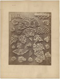 A photograph of these fragments can be found in one of Prisse d’Avennes’ Cairo’s portfolios (IG_86). Furthermore, a retouched and mounted photograph is preserved, which shows the floral and geometrical motifs of the fragments in different compositions (Bibliothèque nationale de France, Fonds Prisse d’Avennes, IG_488).