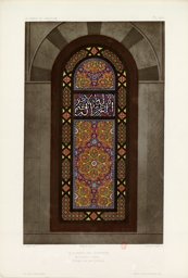The three stucco and glass windows illustrated by Melchior de Vogüé were previously in the octagon of the Dome of the Rock in Jerusalem. The qamariyya depicted here formerly was in window 27 of the octagon. It bears the second part of the name of Sultan Suleiman Qanuni: [(Sultan Suleiman) son of the Sultan Selim Khan, son of Bayazid]. This naming of Sultan Suleiman as well as certain motifs, such as the quadrilobed medallion (see IG_72), suggest that the windows recorded by de Vogüé in 1864 were the ones installed during the renovation in 1528. In contrast, the windows replaced in 1291 AH /1874 CE bore the name of Sultan Abdulaziz (Flood, 2000, p. 435).