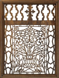 Rectangular wooden latticework backed with enamel-painted sheet glass. The latticework has an average thickness of 8–10mm and is painted with brown paint and varnish.