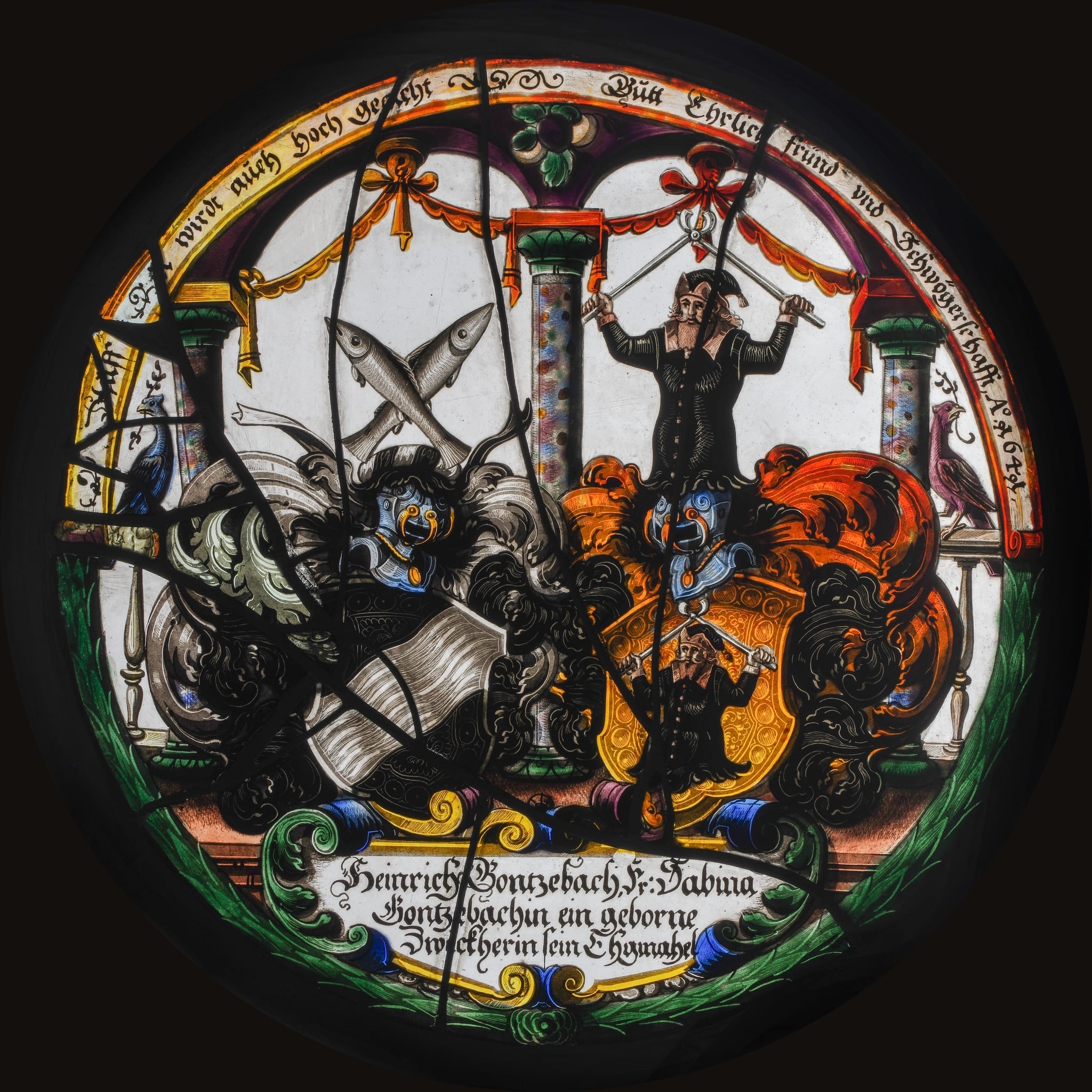 Vitrail aux armes de Heinrich Gonzenbach et Sabine Zwicker