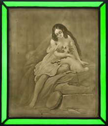 Le troisième à droite montre une jeune femme partiellement dévêtue assise sur un lit, caressant une chèvre, couchée sur ses genoux.