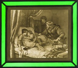 Le quatrième en haut présente deux jeunes enfants endormis enlacés sur un lit alors que deux hommes (probablement leurs pères) les découvrent.