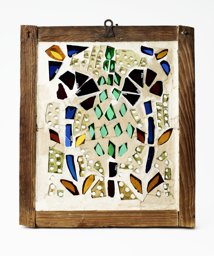 Gypsum plaster, colourless glass with yellowish and greenish tint; coloured glass (green, turquoise green, blue, two shades of yellow), red flashed glass