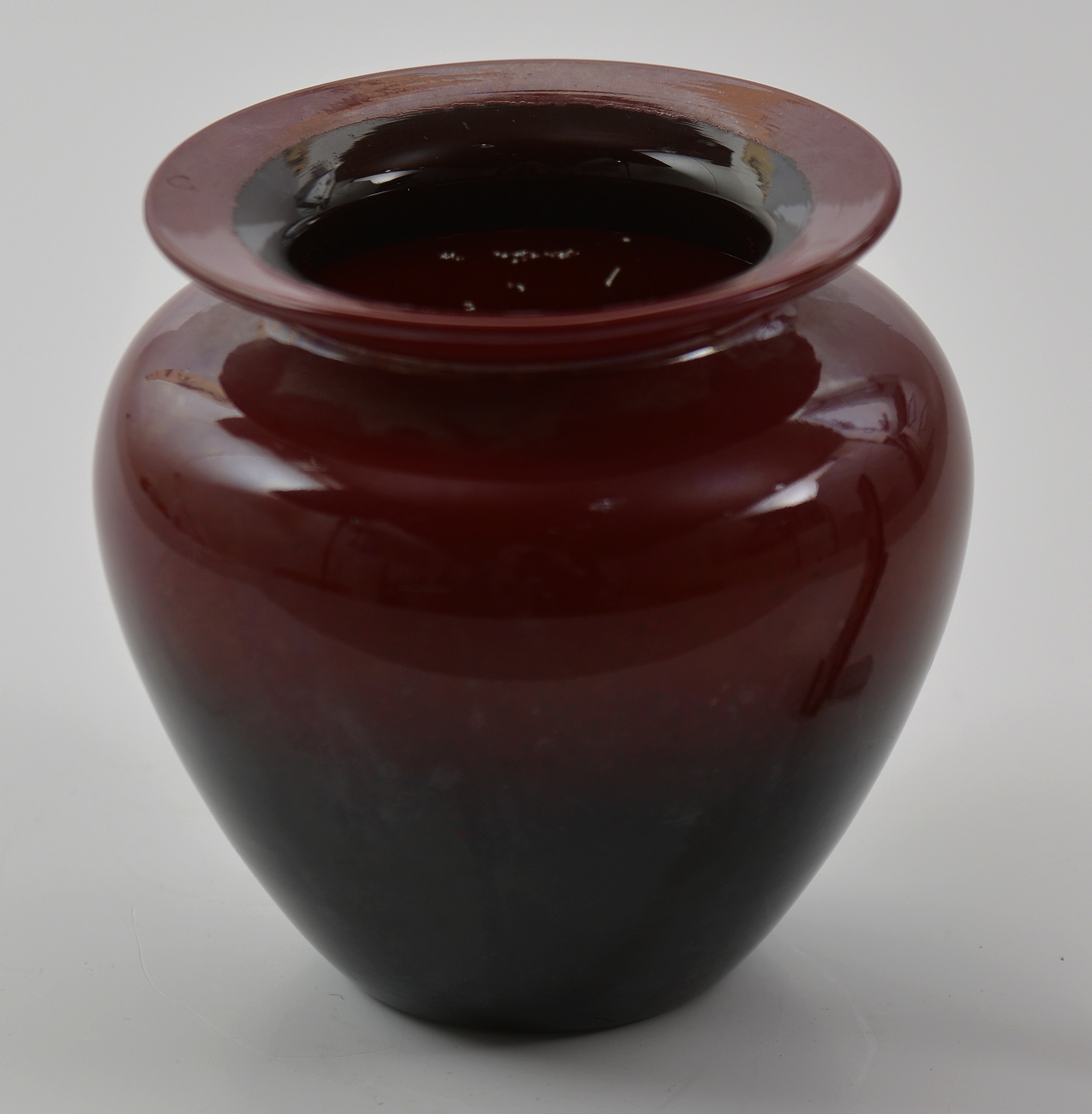 Le vase proposé ici a été émaillé en noir et rouge. Pour garantir une production la plus efficace possible, les pièces sont d’abord émaillées en noir. Dans un second temps, la seconde couleur, le rouge ou le bleu, était appliquée de manière spontanée. Ainsi, bien que produite de manière semi-industrielle, chaque pièce est unique.