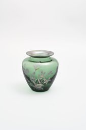 Verre vert, coloration à chaud sans fusion, soufflé en moule, lèvre évasée, surface irisée; forme tronconique