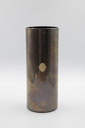 Ce modèle (202) de vase de la Verrerie artistique (1930-1964) a été mis en vente vers 1960. Les sources dont nous disposons sont des catalogues de la Verrerie de St-Prex, certains inédits. Il fait partie de l’offre de la liste de prix de 1960 (Verreries de St-Prex, 1960), disponible en verre vert, émaillé noir, rouge et bleu ainsi qu’en or craquelé et platine. Il figure enfin dans un répertoire non publié, qui, basé sur les numéros d’inventaire des catalogues de 1935 à 1960, dresse la liste de tous les modèles de la production artistique. Notons que les images des modèles de 1960 ne sont pas tirées des catalogues, mais esquissées d’un coup de crayon rapide. Le no 200 est annoté ainsi : "Pile Rittmeyer n’allant pas à la jauge". Il pourrait s’agir d’un verre technique pour la société Rittmeyer, fondée en 1904 et spécialisée dans les systèmes de mesure, ce qui expliquerait le grand nombre de pièces en verre incolore (Verreries de St-Prex, 1964, H 18.5, 25, 32 cm). Un inventaire de fin d’année pour les années 1955 à 1958, conservé dans les archives du Musée du Verrier de Saint-Prex, recense en effet une production de 671 exemplaires pour 1958 (Verreries de St-Prex, 1955, 257-259). Ainsi, il est probable que la Verrerie de St-Prex ait profité de synergies internes pour la création d’un nouveau modèle. D’après les sources, ce dernier fut commercialisé de 1958 à 1964.