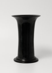 Ce modèle de vase (126) fut créé à une période précoce de la Verrerie artistique (1930-1964). Les sources dont nous disposons sont des catalogues de la Verrerie de St-Prex, certains inédits, tels que les albums noirs munis de photographies de vases, vraisemblablement utilisés par les représentants de 1931 à 1935, où ce modèle porte le no M1. Il est disponible en verre vert, émaillé rouge, bleu ou noir ainsi qu’argenté craquelé (Verreries de St-Prex, 1931, H 30 cm). Ce modèle fait également partie de l’offre du premier catalogue de vente imprimé de 1935 (Verreries de St-Prex, 1935, 3), où il est présenté en verre vert. Il figure ensuite dans un répertoire non publié, qui, basé sur les numéros d’inventaire des catalogues de 1935 à 1960, dresse la liste de tous les modèles de la production artistique (Verreries de St-Prex, 1964, H 27 cm). La liste de prix de 1960 le propose également en plus petit (Verreries de St-Prex, 1960, H 16 cm). D’après les sources, ce modèle a été ainsi élaboré dès 1931 et produit jusqu’en 1964.