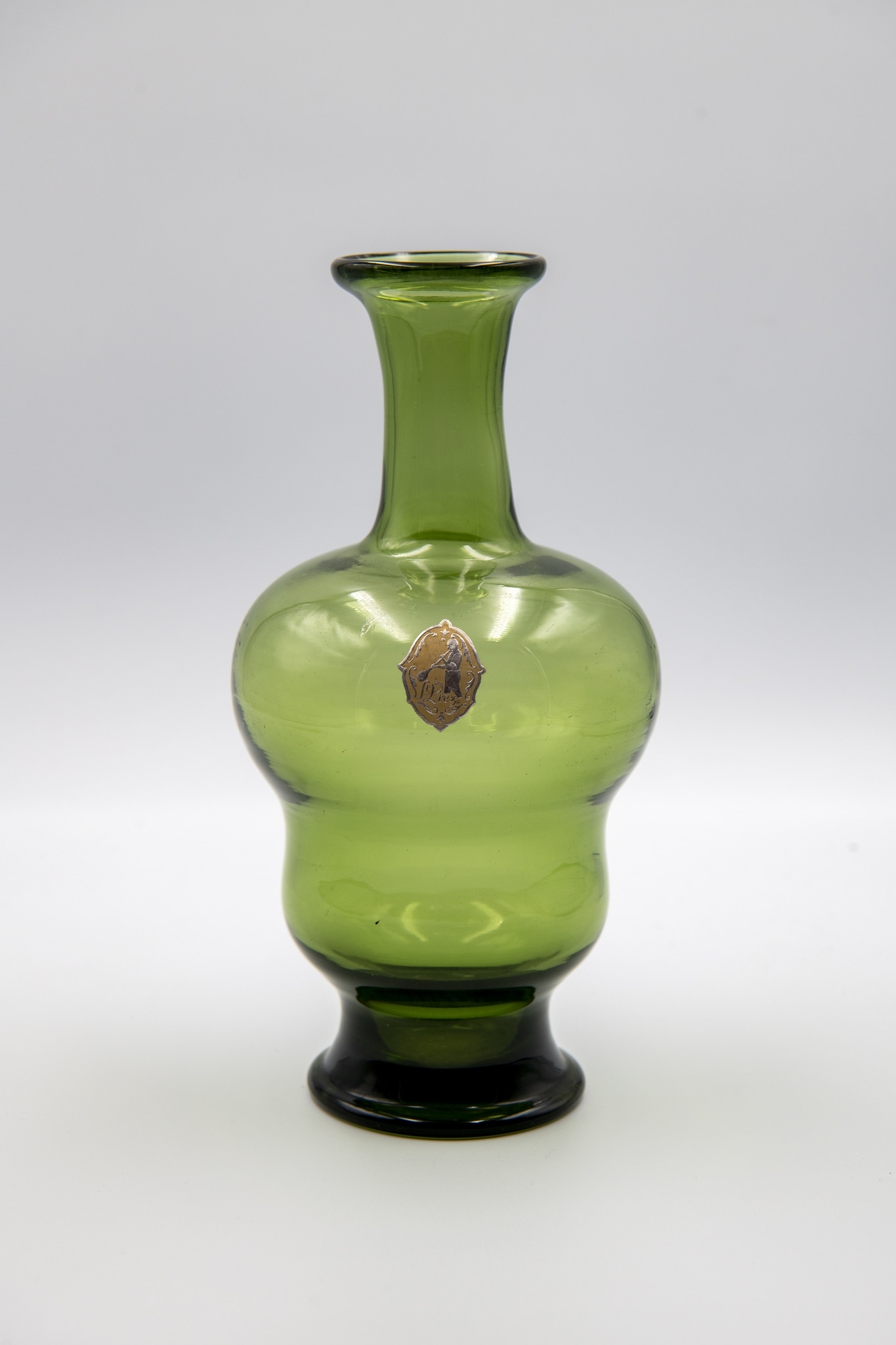Sans le timbre doré des premières années ou d’autres particularités, rien ne suggère que le vase présenté ici ait été produit avant 1935. Lorsque les pièces en verre vert ne présentaient ni impuretés ni défauts de fabrication, elles étaient commercialisées telles quelles. Sinon, elles servaient de base à la réalisation de modèles émaillés.