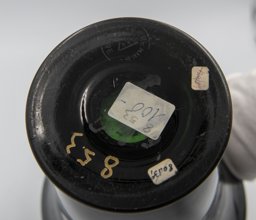 Le vase émaillé en noir présenté ici, muni du timbre doré sous le fond, est typique de la production de 1931 à 1935.
