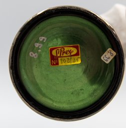 Selon la liste de prix de 1951, le décor argenté craquelé est remplacé par un nouveau revêtement dénommé "platine" qui correspond à notre vase (Walther, 2025, 65). Ce dernier a donc été réalisé entre 1951 et 1964.