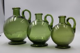 Verre vert soufflé en moule, anse et pied appliqués à chaud; forme sphérique
