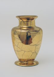 Ce modèle (188) de vase de la Verrerie artistique (1930-1964) a été commercialisé dès 1937. Les sources dont nous disposons sont des catalogues de la Verrerie de St-Prex, certains inédits. Il fait partie de l’offre des "Nouveautés", publiée en 1937 (Verreries de St-Prex, 1937, H 26 cm), qui est disponible en verre vert (VV), émaillé en noir, rouge-brillant et rouge-mat (N, RB et RM), en bleu-brillant et bleu-mat (BB et BM), en argenté lustré et craquelé (AL et AC), et finalement en or bordé, lustré ou craquelé (OB, OL et OC). Il figure finalement dans un répertoire non publié, qui, basé sur les numéros d’inventaire des catalogues de 1935 à 1960, dresse la liste de tous les modèles de la production artistique (Verreries de St-Prex, 1964, H 26 cm). D’après les sources, ce modèle est ainsi mis en vente dès 1937 et produit jusqu’en 1964.