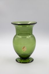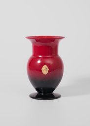 Ce modèle de vase (144) fut créé à une période précoce de la Verrerie artistique (1930-1964). Les sources dont nous disposons sont des catalogues de la Verrerie de St-Prex, certains inédits, tels que les albums noirs munis de photographies de vases, vraisemblablement utilisés par les représentants de 1931 à 1935, où ce modèle porte le no 165 (H 23-43 cm). Il est disponible en verre vert, émaillé noir, rouge, et argenté craquelé (Verreries de St-Prex, 1931). Ce modèle fait également partie de l’offre du premier catalogue de vente imprimé de 1935 (Verreries de St-Prex, 1935, no 144, 2, 12, et 16), où ce vase est décliné en verre vert, or lustré et en noir.