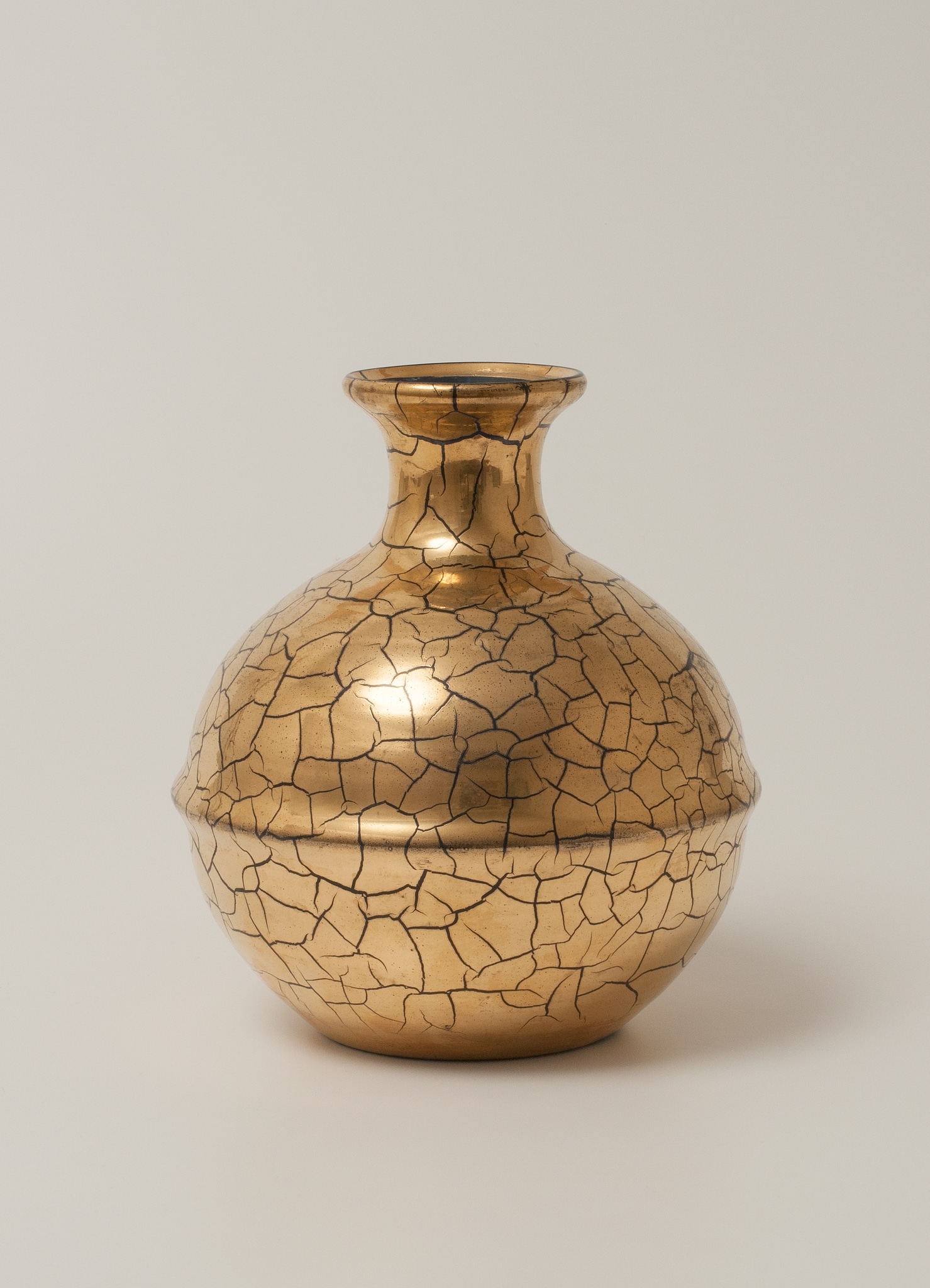 Le décor doré craquelé est emblématique de la Verrerie artistique. La qualité du craquelé, serré et peu brillant, est typique d'une pièce réalisée avec l'émail bleu disponible jusqu’en 1942 (Walther, 2025, 65).