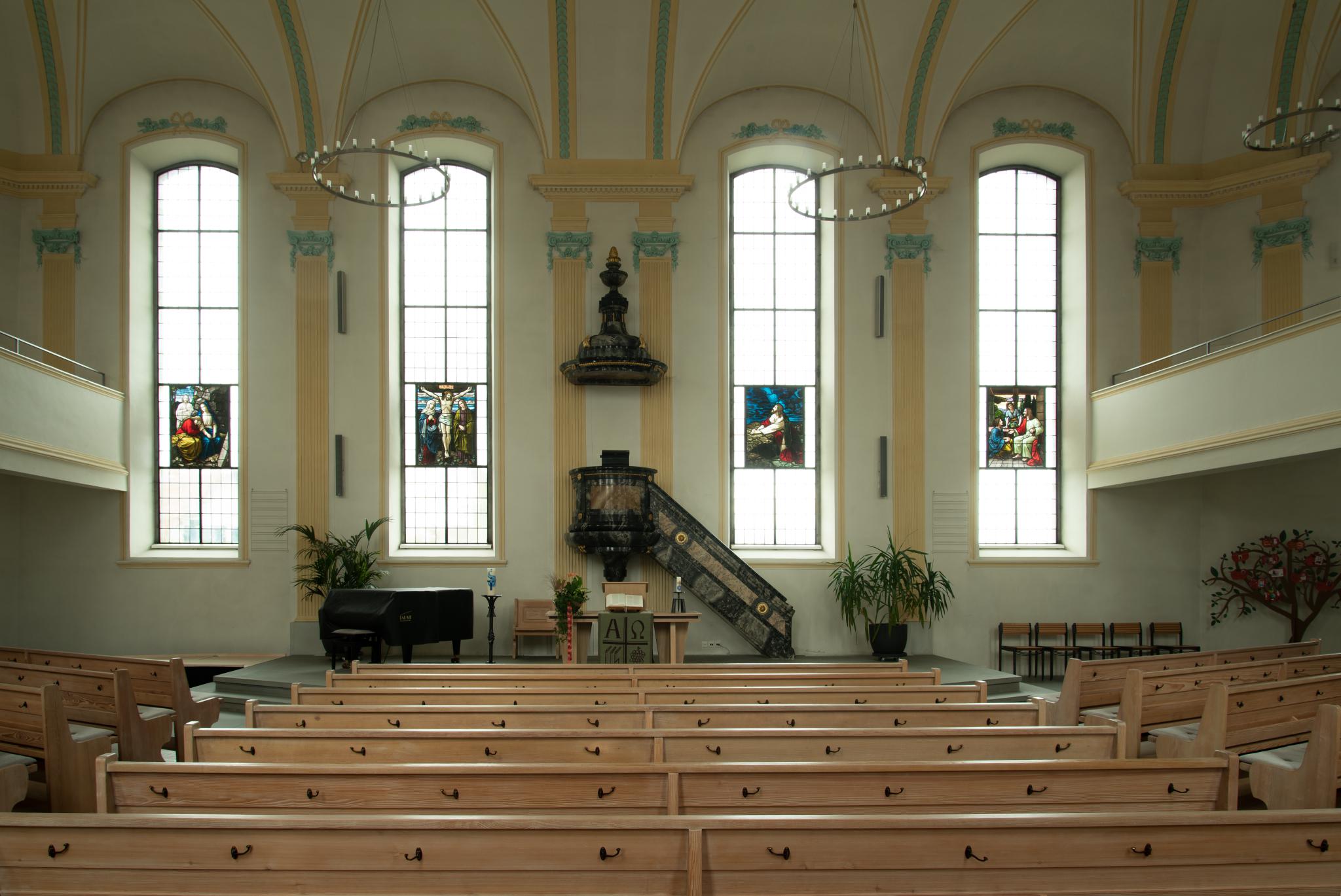 1811–12 erbaut durch Josef Simon Moosbrugger. Renoviert 1894, 1957 und 2009–10. Querachteckiger Einheitsraum mit Spitzhelmturm an der nördlichen Schmalseite. Klassizistische Gliederung und Ausstattung. Glasfenster 1920–1928 aus der Werkstatt von Heinrich Röttinger, teilweise nach Entwürfen von Carl Elmpt.