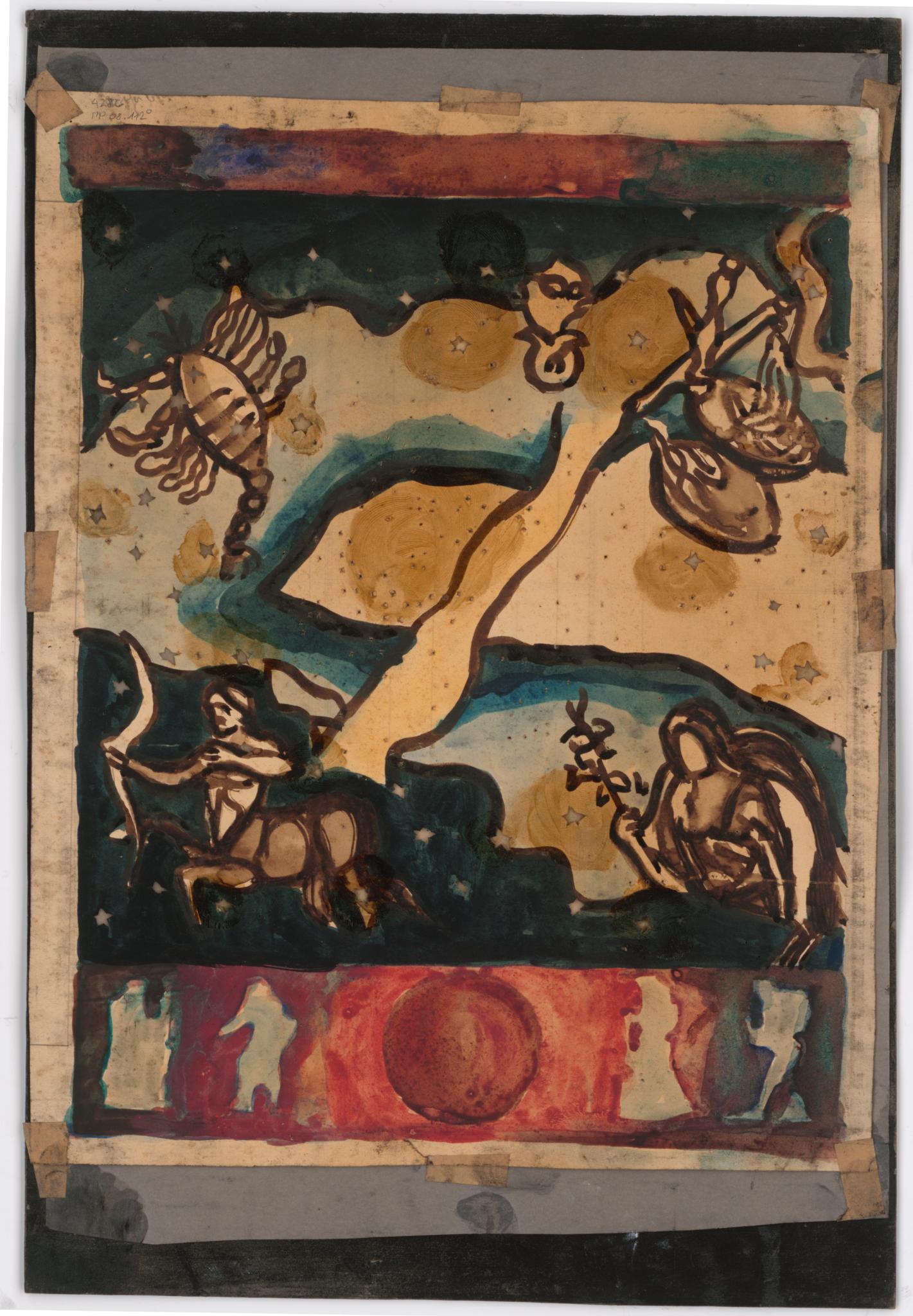 Verso : projet à la gouache de "Cartes du ciel" (mois d'octobre, novembre, décembre)