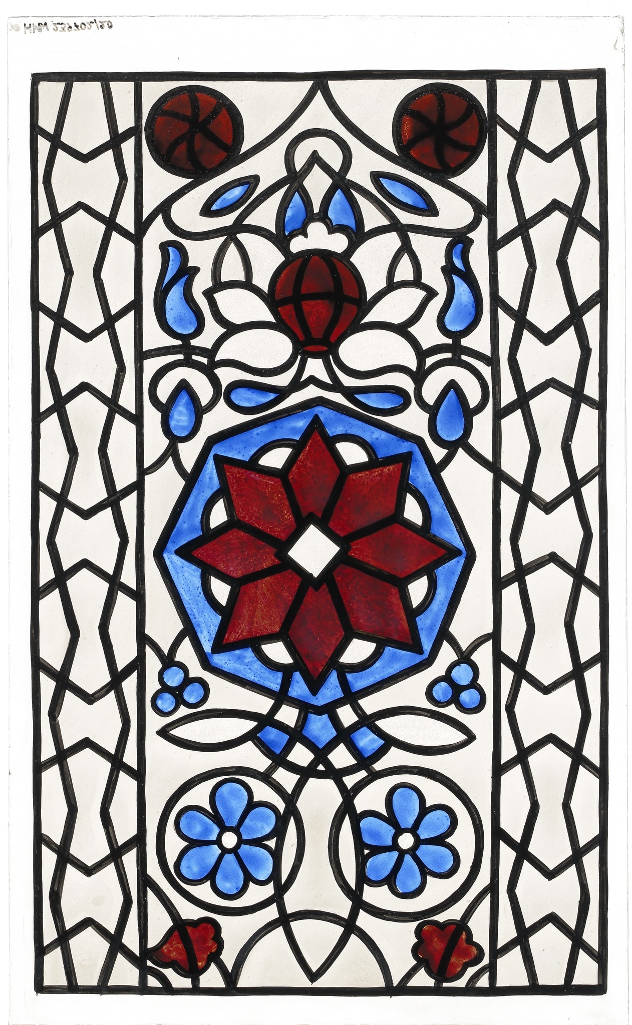 IG_374: Replica of stucco and glass window with floral and geometric ornamentation