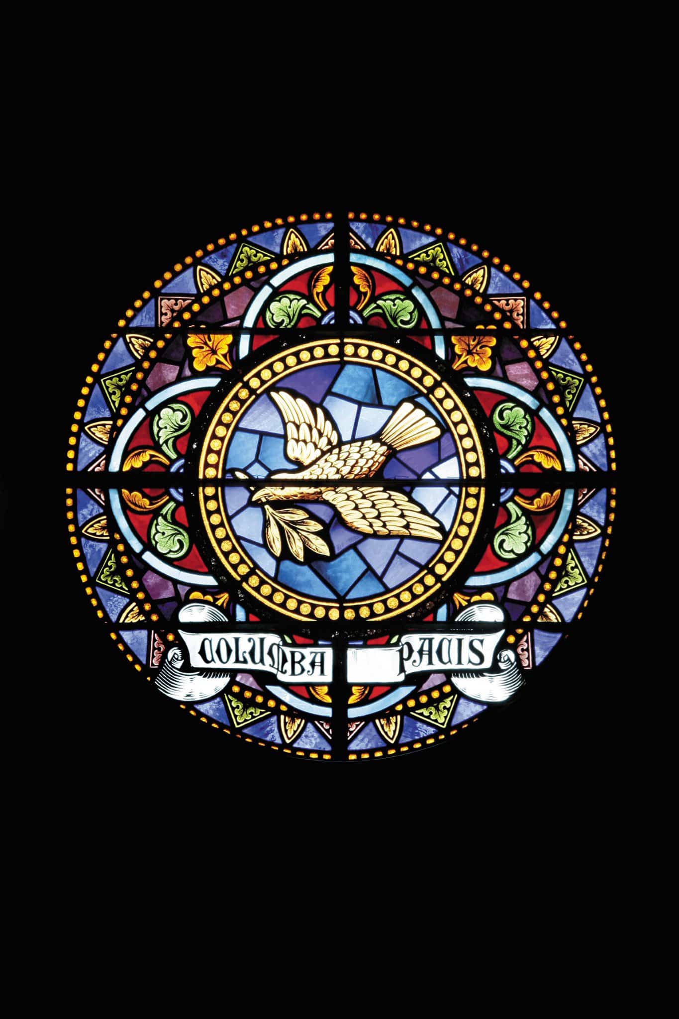 Une rose aux motifs végétaux avec au centre la colombe de la paix