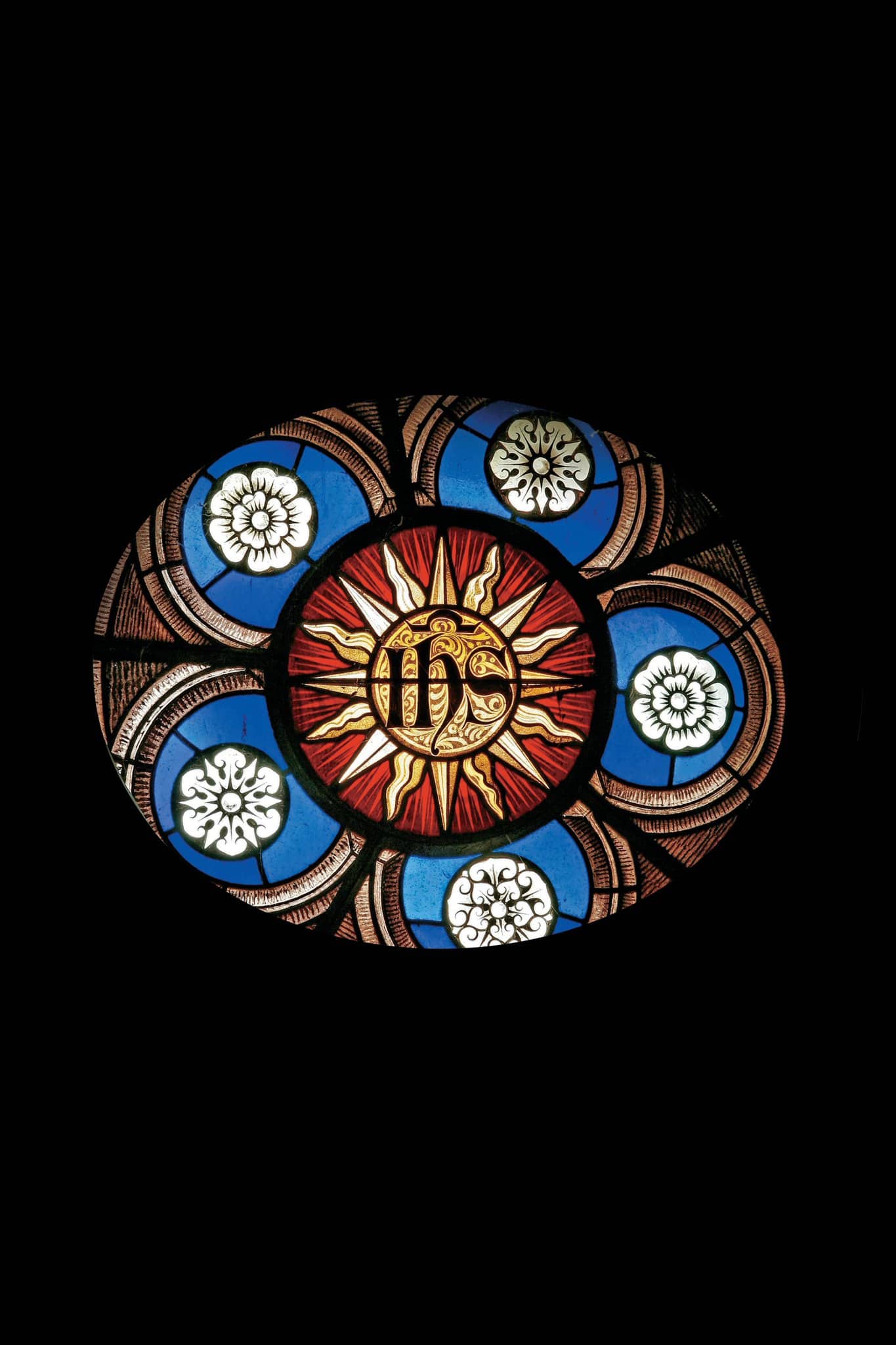 Rosace aux motifs floraux avec un soleil au centre
