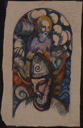 Ce travail préparatoire a été réalisé par Marcel Poncet dans le cadre d'une commande de vitraux obtenue en 1917 pour la chapelle de la Prévôté du Grand-Saint-Bernard à Martigny, en Valais.
