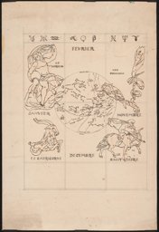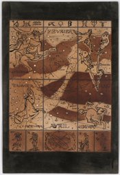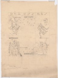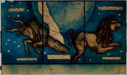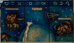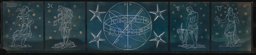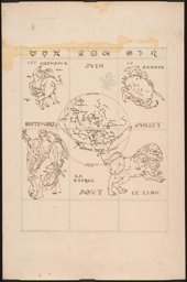 Carte du ciel en frise avec le zodiaque au centre des personnifications des mois (juin à août) et symboles zodiacaux