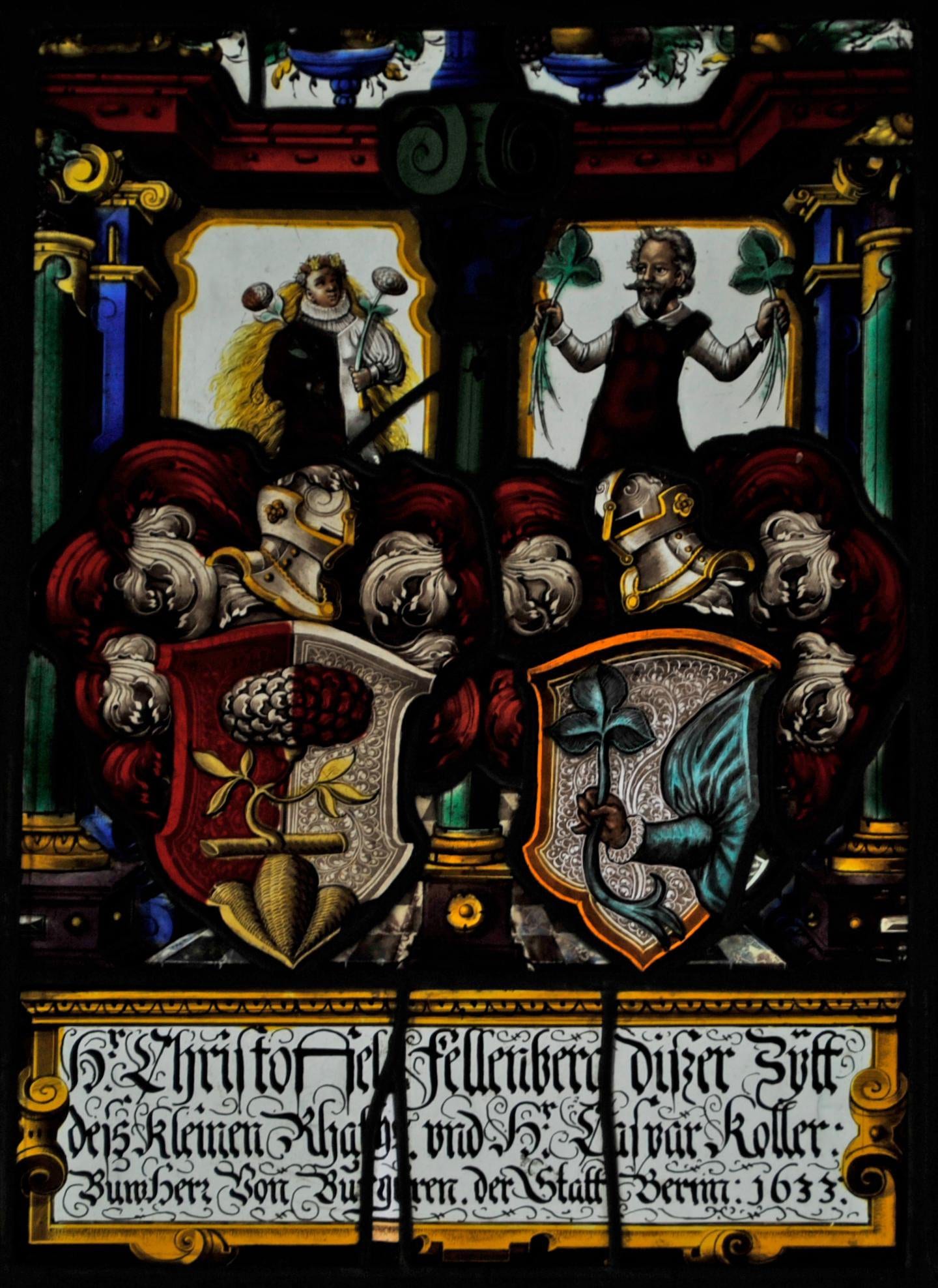 Christoph Fellenberg (1591–1654), der Sohn Christophs († 1624) war Siechenschreiber und Ohmgeltner. Als Landvogt amtete er seit 1624 in Bipp und seit 1635 in Wangen. 1633 wurde er in Bern Mitglied des Kleinen Rats. Verheiratet war er seit 1610 mit Ursula Keller, der Tochter Hans Jakobs und der Margaretha von Werdt, und seit 1637 mit Anna Kistler (HBLS 3/1926, S. 135; Kessel 2015). Verschollen ist seine Wappenscheibe, die er 1630 als Landvogt zu Bipp in die Kirche Niederbipp stiftete (Thormann/von Mülinen 1896, S. 80).