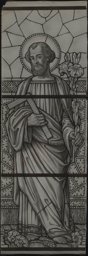 L’église de Grolley a été construite entre 1906 et 1907 (Lauper, 2012, p. 247). L’ensemble des vitraux date de 1907 (Schroeter, 2004, p. 62) et est l’oeuvre de l’atelier Kirsch et Fleckner et Raymond Buchs. Les cartons KF_783 et KF_791 sont signés et datés. L’artiste est alors à Berlin où il dirige un atelier de graphiste pour lequel il décroche de nombreuses commandes et a un véritable succès (Rudaz, 2001a, p. 15). Cela ne l’empêche pas de garder un lien avec l’atelier Kirsch et Fleckner et de continuer à travailler pour eux (Rudaz, 2001b, p. 20). Ce cycle s’inscrit après ceux de Neyruz (1904-1906) et de Vuisternens-devant-Romont (1906). La composition des vitraux du choeur est très proche de celle de Vuisternens-devant-Romont (1906), où le saint représenté est debout devant une tenture se déployant sur les deux tiers de la hauteur.