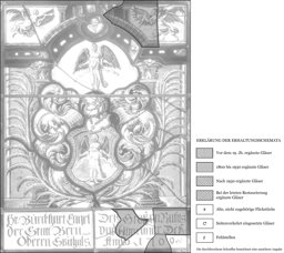 In Münsingen sind die Scheiben mit den Wappen Dübelbeiss, Wagner, Tillier und Engel analog gestaltet.