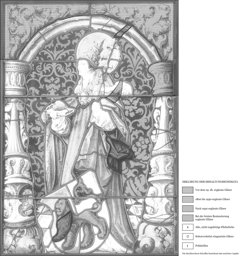 Farbloses und farbiges Glas; Bemalung mit Schwarzlot und Silbergelb.