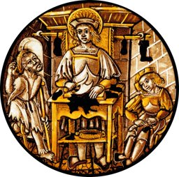 Das Rundscheibchen soll laut Museumsinventar wie die vorhergehenden beiden fast gleichformatigen Glasgemälde aus dem Zunfthaus der Schuster stammen.