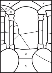 Farbloses, violettes, grünes und blaues Glas. Rotes Überfangglas in verschiedenen Farbnuancen, stellenweise mit rückseitigem Ausschliff. Bemalung mit Schwarzlot und Silbergelb in verschiedenen Farbstufen sowie blauen und violetten Schmelzfarben.