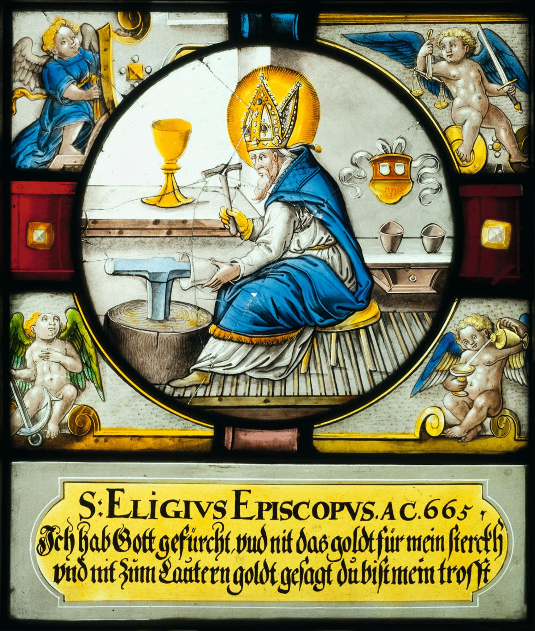 Inschrift: S: Eligivs Episcopvs. AC. 665. / Ich hab Gott gefürcht, vnd nit das goldt für mein sterckh / vnd nit zum Lautern goldt gesagt du bist mein trosst.