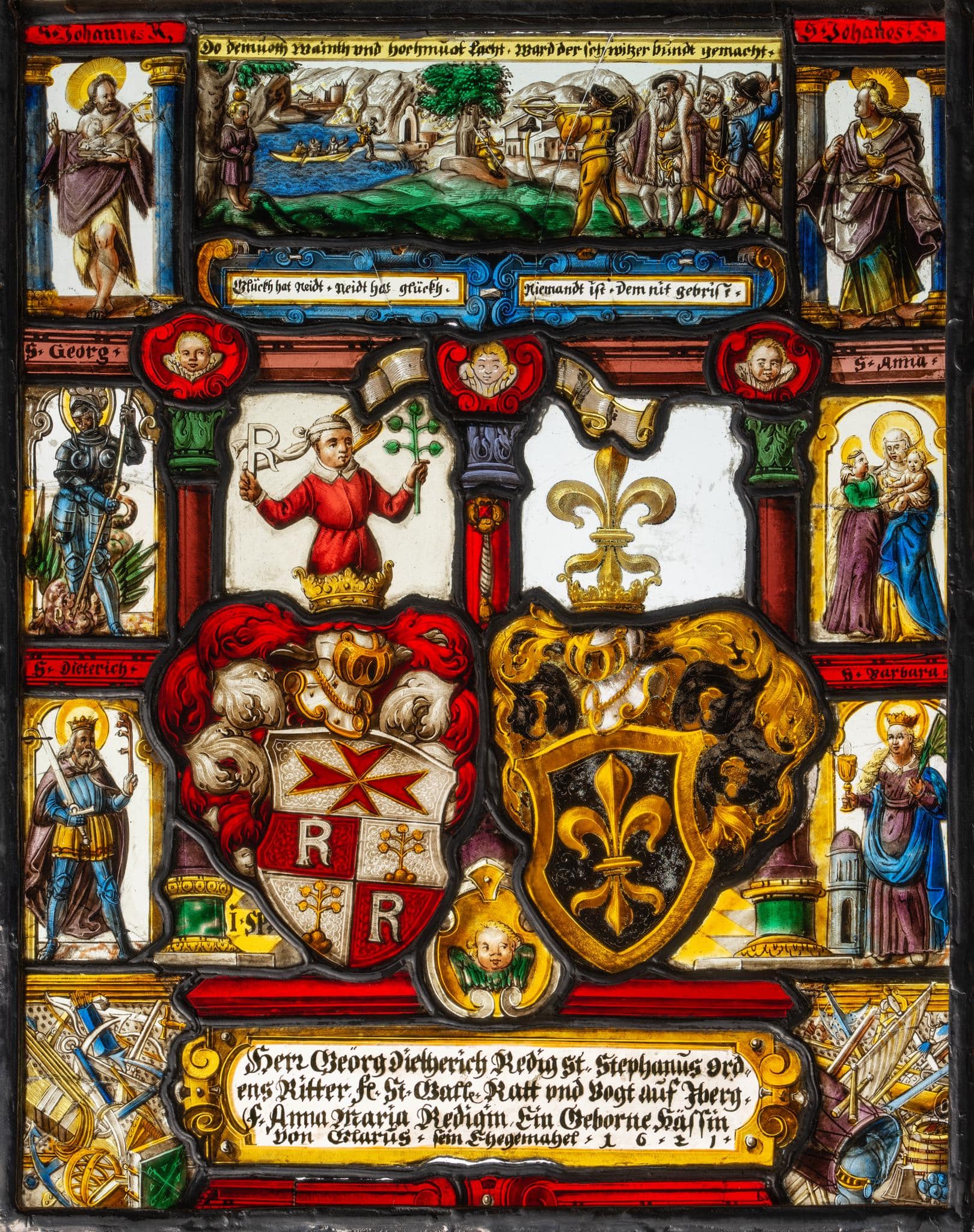Herr Geörg Dietherich Redig St. Stephanus Ord:/ens Ritter fl. St. Gall. Ratt vnd Vogt auf Jberg. / F. Anna Maria Redigin Ein Geborne hässin / von Glarus sein Ehegemahel 1621
