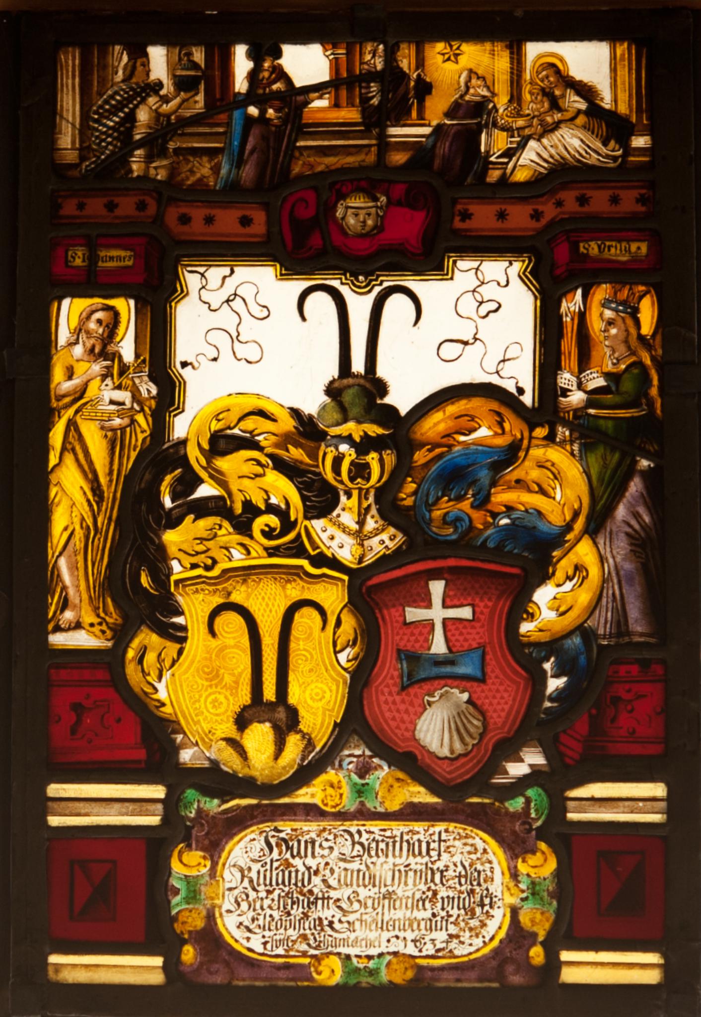 Hans Bernhart / Růland, Landtschrÿber der / Herrschafft Grÿffensee vnd Fr: / Cleophea Schellenbergin / sÿn Ehgmachel. 1634.