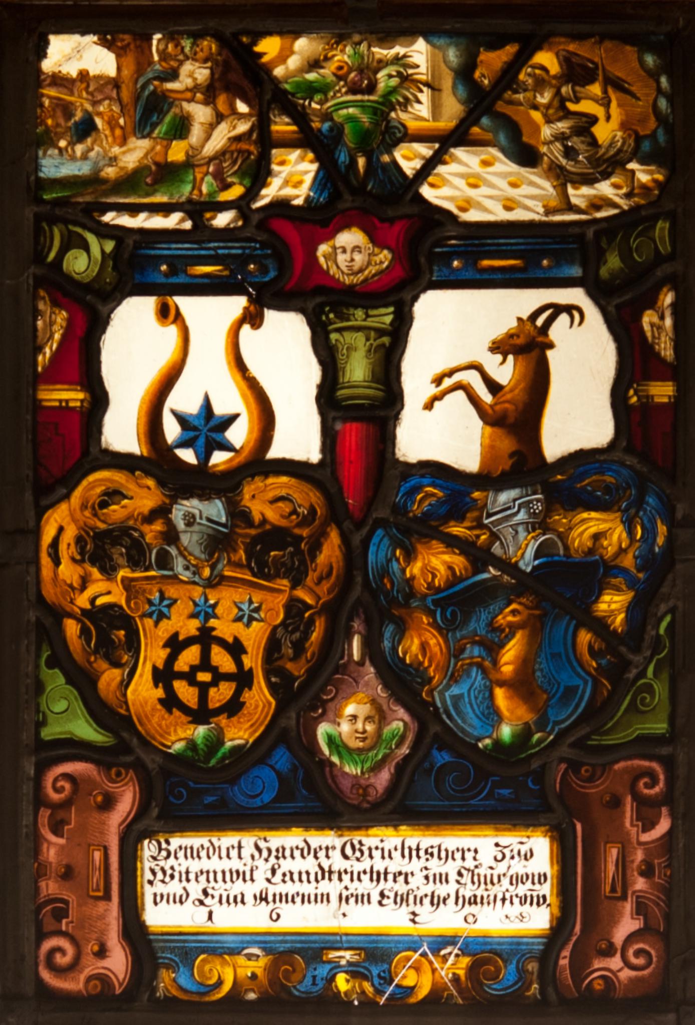 Benedict Harder Grichtsherr zuo / Witenwil Landtrichter Jm Thurgöw / vnd Eva Amenin sein Ehliche hausfrow. / 16 · 20