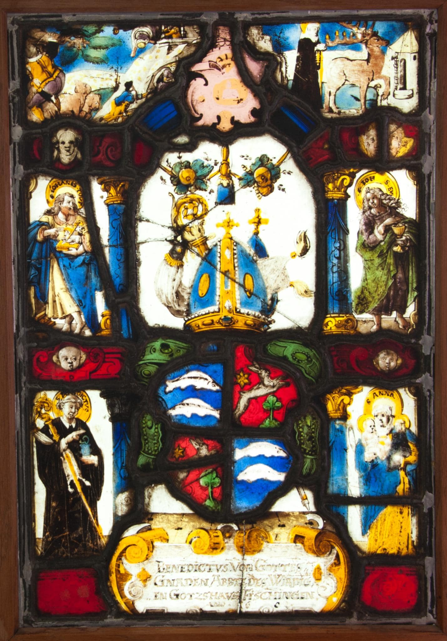BENEDICTVS VON GOTTES / GNADEN ABBT DES WIRDIG / EN GOTZSHAVS FISCHINGEN / ANO 1602