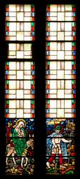 Maria und Josef flüchten vor Herodes nach Ägypten. Maria reitet mit dem Kind in ihren Armen auf dem Esel, Josef führt ihn an einem Zügel. Hinter Maria erscheint der Engel, der sie vor Herodes gewarnt hatte. Links unten ist das Stifterwappen angebracht.