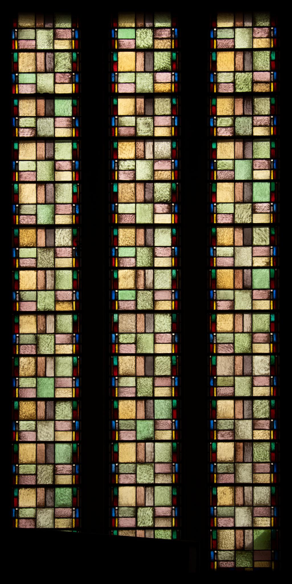 n II, n III, s II, s III, s IV, s V, s VI: hochrechteckige schmale Fenster mit farbigen Rechtecken und Rahmenverzierung.