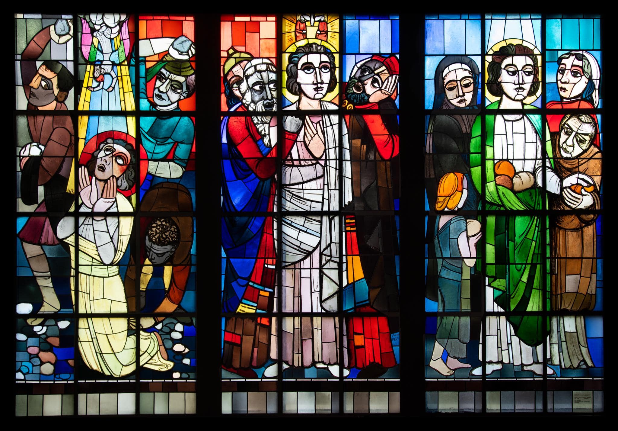 Es werden drei Stationen aus dem Leben des hl. Stephanus dargestellt. Rechts verteilt der Diakon Brot unter den Armen. In der Mitte steht er vor dem Hohen Rat, wo er eine Vision von Jesus und Gottvater hat und in der Folge verurteilt wird. Links ist seine Steinigung dargestellt.