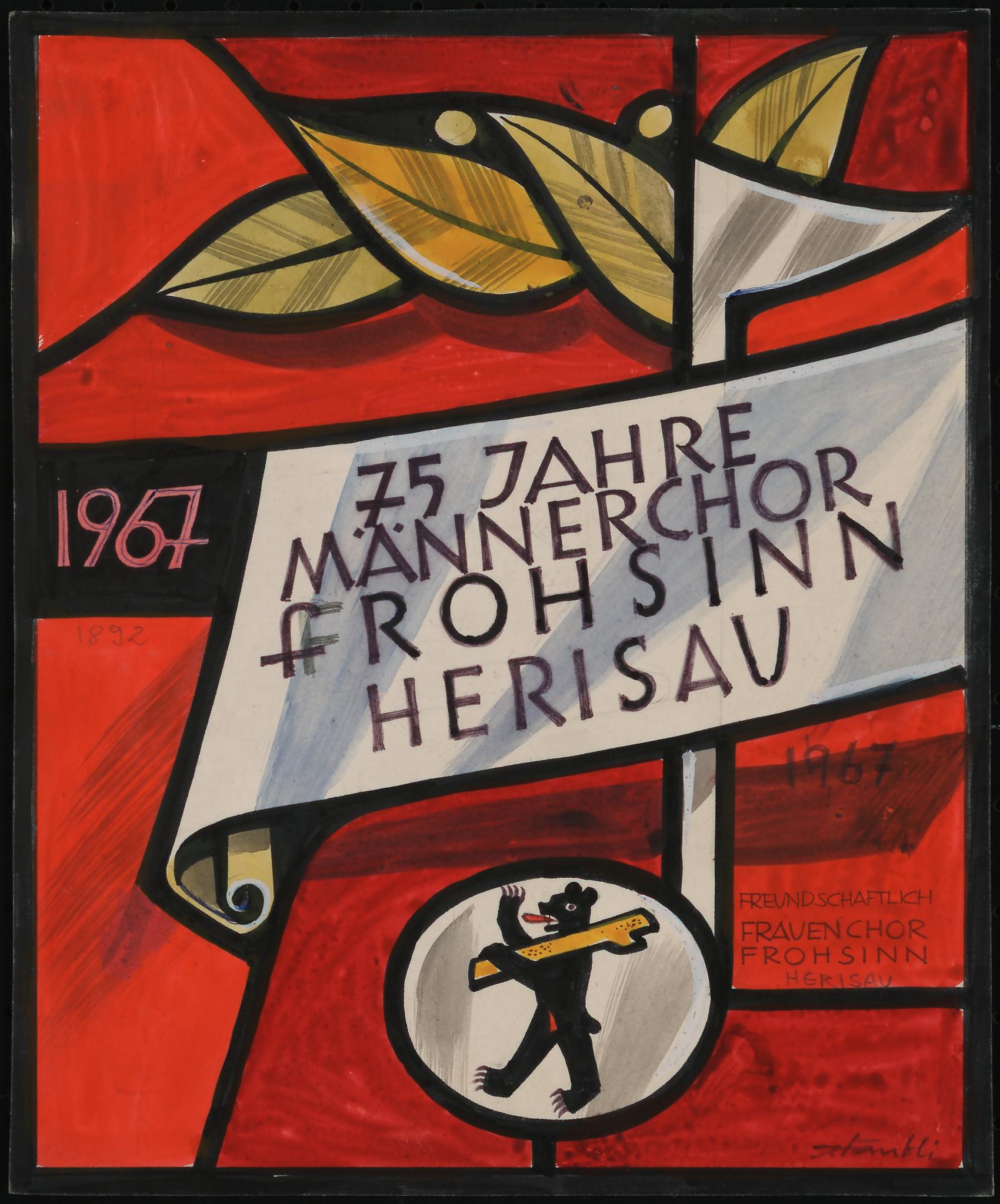 1967 / 1892 // 75 JAHRE / MÄNNERCHOR / fROHSINN / HERISAU / 1967 / (recto)