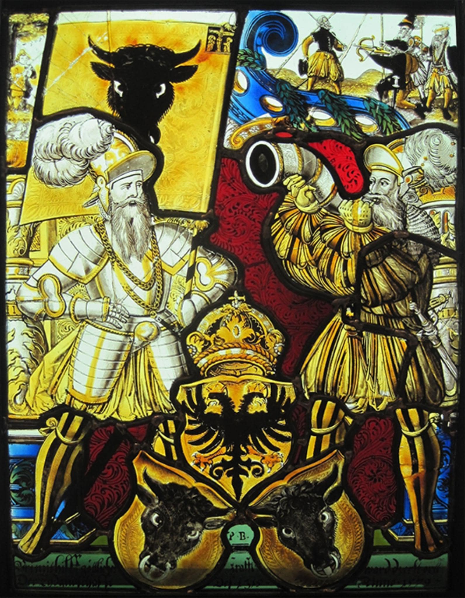 Le canton d’Uri est en effet l’un des quatre „Waldstätten“, canton de l'ancienne Confédération en 1315, peut-être même déjà en 1291 ou 1309. La date de 1315, inscrite sur le cartouche du vitrail de Londres, est tant une référence à la bataille de Morgarten qu’à l’alliance signée la même année entre les cantons de Schwytz, d’Unterwald et d’Uri. La principale extension de ce nouveau pacte, par rapport à celui de 1291, consistait en une série de dispositions définissant une politique "étrangère" commune (principes que les Waldstätten observeront durant des siècles). La garantie des droits seigneuriaux était réaffirmée, mais expressément supprimée envers un seigneur qui attaquerait l'un des alliés. Jusqu'à la fin du XIXe siècle, le pacte de 1315 fut considéré comme la charte fondatrice de la Confédération (Wiget 2015, consulté le 24 février 2021).