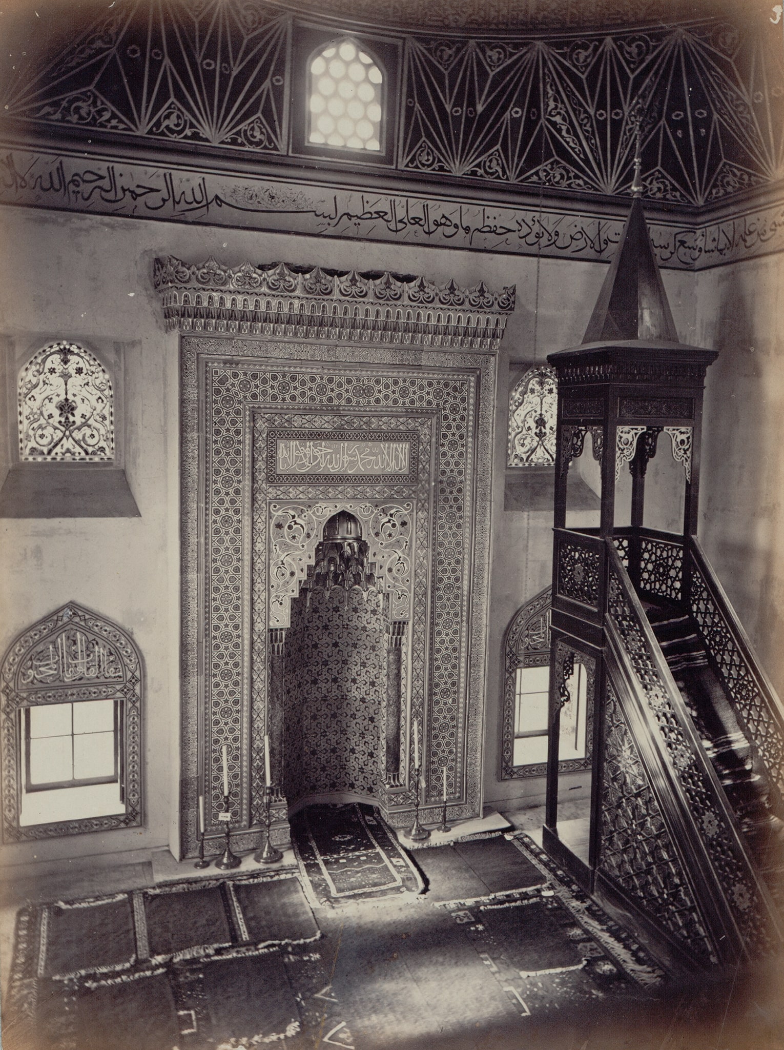 A close look at the window’s design reveals that it is exactly the stucco lattice found in the upper half of the stucco and glass window illustrated in fig. 34 in Léon Parvillée’s publication Architecture et décoration turque au XVe siècle (IG_245). Parvillée was the architect of the 1867 Ottoman pavilions. Either he based the design of the windows shown in Paris on the drawing reproduced in his publication, meaning that new windows were made for the occasion, or the historical architectural fragments that were the base for the drawing were exported to Paris and used temporarily in the mosque pavilion.