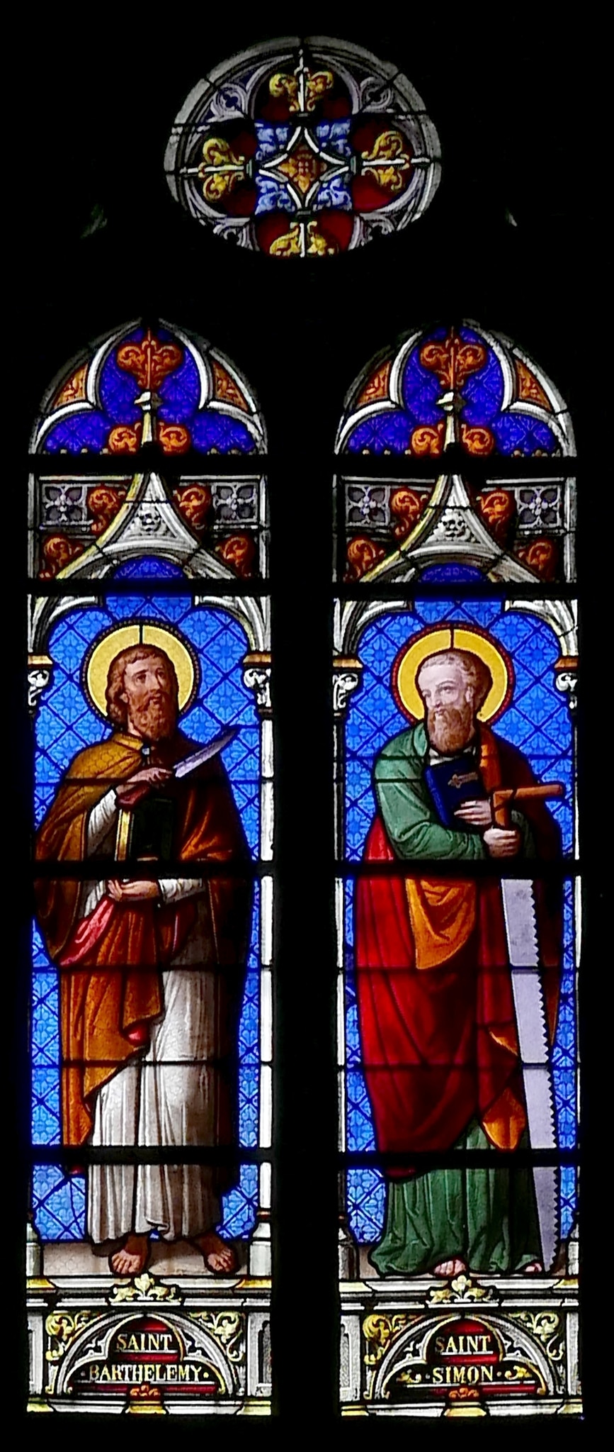 Eine von 35 Glasmalereien der spätgotischen Kathedrale Saint-François de Sales in Chambéry, die zwischen 1860 und 1876 vom Atelier Gsell-Laurent in Paris hergestellt wurden.