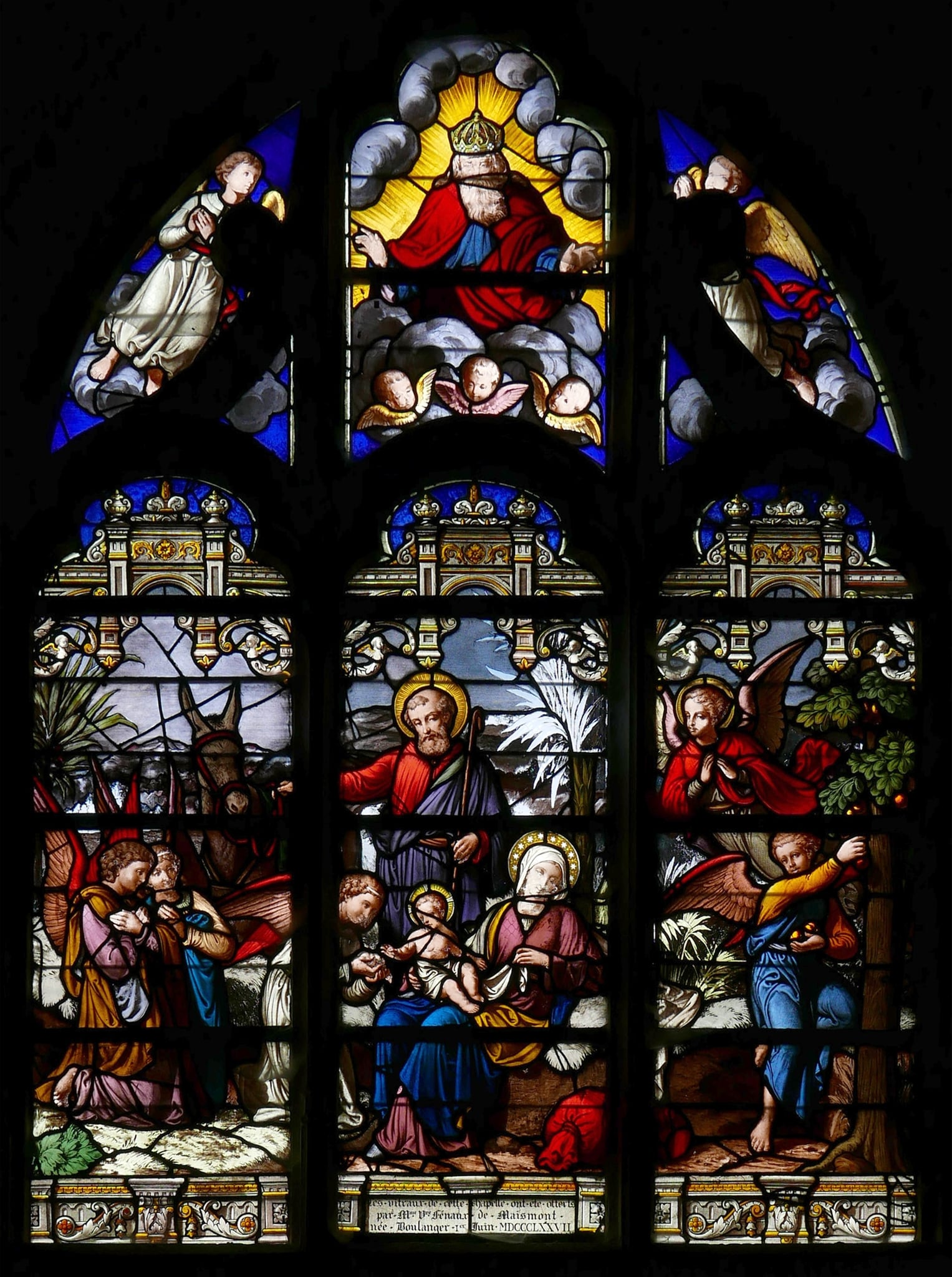 In der zweiten Hälfte des 19. Jahrhunderts setzten sich die beiden Pfarrer François Xavier Lemaire (1858–1867) und Célestin Laurent (1867–1897) für die Restaurierung der Kirche Notre-Dame von Senlis und ihre Ausstattung, unter anderem mit einem umfangreichen Glasmalereiensemble, ein (Aubert, 1910, 49). Dazu gehören die beiden Glasmalereien in der Josephskapelle von 1877 (CG_278, CG_279) aus dem Pariser Glasmalerei-Atelier Gsell-Laurent (das dritte Fenster der Kapelle zum Tod Josephs ist nicht erhalten; siehe Laurent, 1889, 16–17).