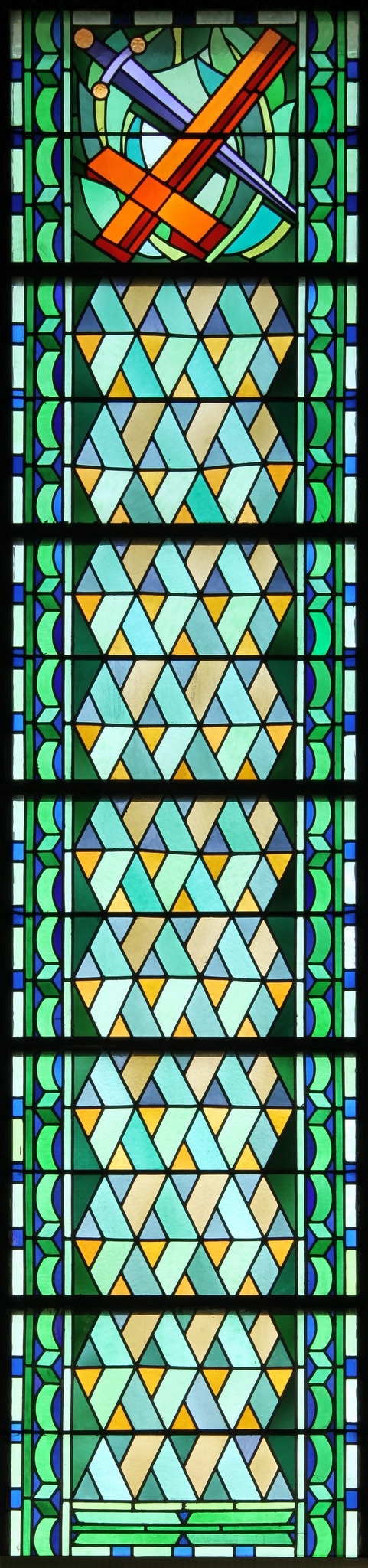 GSL_294: Vitrail géométrique avec les symboles de saints Pierre et Paul